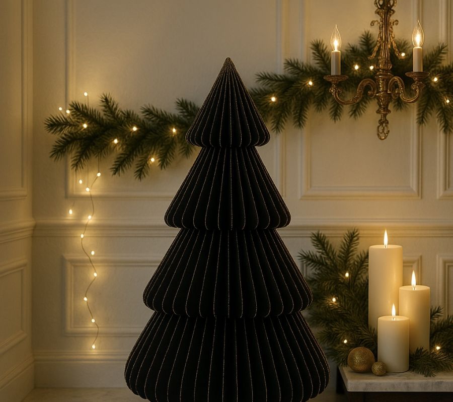 Jeśli Święta mają dla Ciebie smak klasy i wyrafinowania, Choinka papierowa składana 90 cm black będzie idealnym wyborem. Jej głęboka, czarna barwa z delikatnym złotym połyskiem tworzy wyjątkowy efekt – elegancki, nowoczesny i ponadczasowy. To dekoracja, która doskonale podkreśla charakter wnętrz urządzonych z dbałością o detale.