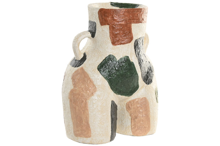 Czy dekoracja może jednocześnie prowokować i zachwycać subtelnością? Body to wazon, który łączy odważną formę z naturalną harmonią. Jego rzeźbiarska sylwetka przywodzi na myśl ludzkie kształty, a nieregularne kompozycje w odcieniach zieleni, terakoty, czerni i beżu tworzą niepowtarzalną kompozycję przypominającą współczesne dzieło sztuki.