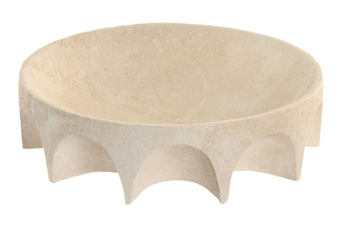 Każdy łuk tej niezwykłej misy tworzy subtelną grę światła i cienia, przywołując monumentalne arkady starożytnej architektury. Wykonana w odcieniu kremowego kamienia, stanowi symbol harmonii i ponadczasowego piękna. Jej geometryczna forma i szorstka powierzchnia nadają wnętrzu artystyczny wymiar, sprawiając, że Colosseum Crema staje się centralnym punktem aranżacji – niczym mała rzeźba na stole, konsoli czy komodzie.