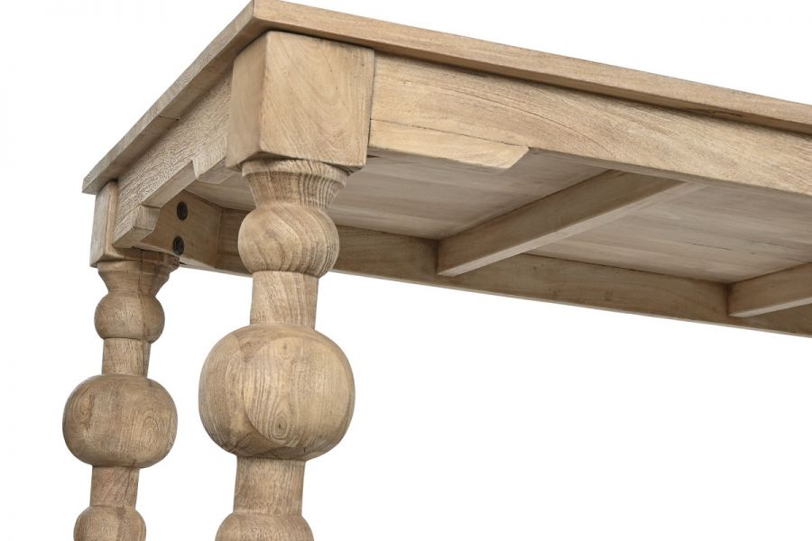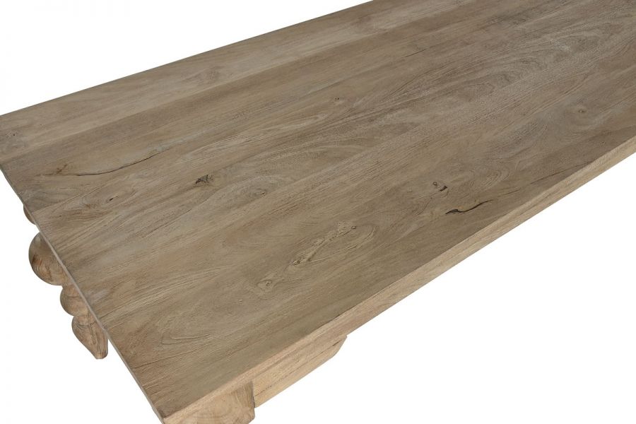 Każdy element stołu Valbonne został zaprojektowany tak, by tworzyć idealną równowagę pomiędzy sztuką a funkcjonalnością. Rzeźbione nogi o unikatowym profilu stanowią małe dzieła sztuki stolarskiej – solidne, ale subtelne w odbiorze. Szeroki blat o naturalnej fakturze drewna odbija światło dzienne, nadając wnętrzu głębi i miękkości. Ten mebel nie tylko definiuje przestrzeń – on ją uszlachetnia.