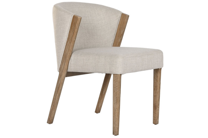 Smukłe nogi z naturalnego drewna, miękkie siedzisko oraz subtelnie otulające oparcie tworzą kompozycję idealną do współczesnych aranżacji. Krzesło tapicerowane w delikatnym odcieniu beżu doskonale współgra z jasnymi wnętrzami, stanowiąc piękne dopełnienie stołu w jadalni, biura w stylu skandynawskim czy salonu o luksusowym charakterze.