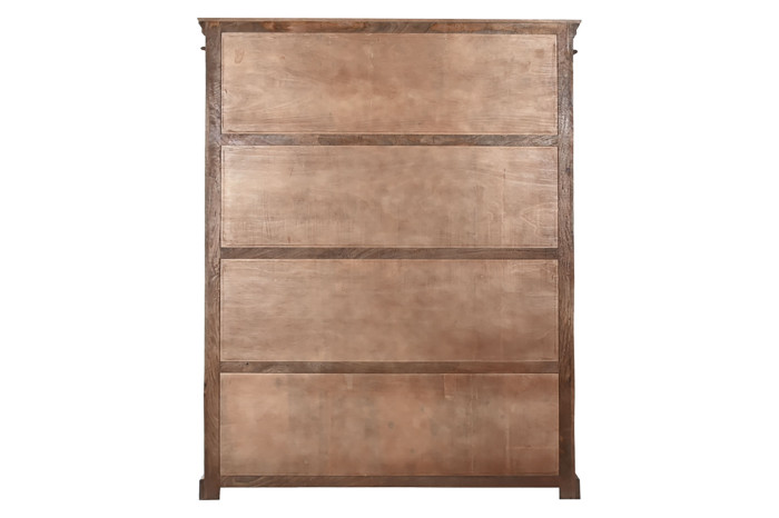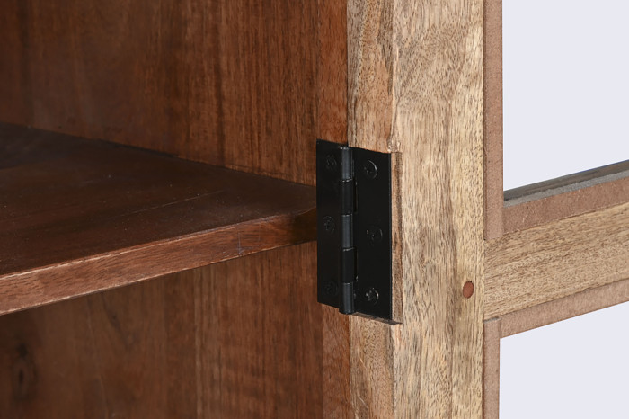 Środkowa część z pojemnymi szufladami została zaprojektowana tak, by zapewnić wygodne przechowywanie bez utraty elegancji. Przeszklone segmenty po bokach stanowią idealne miejsce na ekspozycję porcelany, szkła lub kolekcji dekoracji, tworząc harmonijną grę przejrzystości i cienia. To mebel, który potrafi nadać przestrzeni strukturę i wyraźny, architektoniczny porządek.
