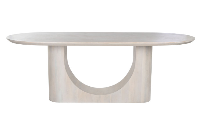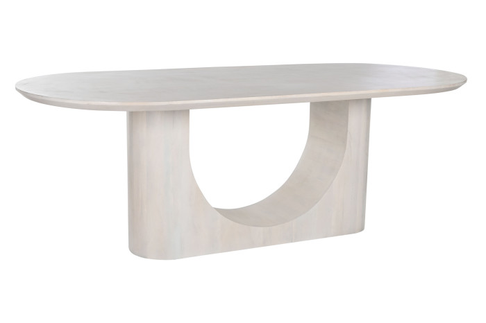 Jak wygląda idealne miejsce spotkań, w którym design staje się sztuką, a codzienność nabiera eleganckiego spokoju? Stół Arco Japandi z jasnego drewna mango zachwyca subtelną grą światła i kształtu, wprowadzając do wnętrza atmosferę spokoju i ciepła, typową dla estetyki Japandi. Jego eliptyczny blat spoczywa na rzeźbiarskiej podstawie z półokrągłym wycięciem, która przypomina architektoniczny detal nowoczesnych wnętrz.