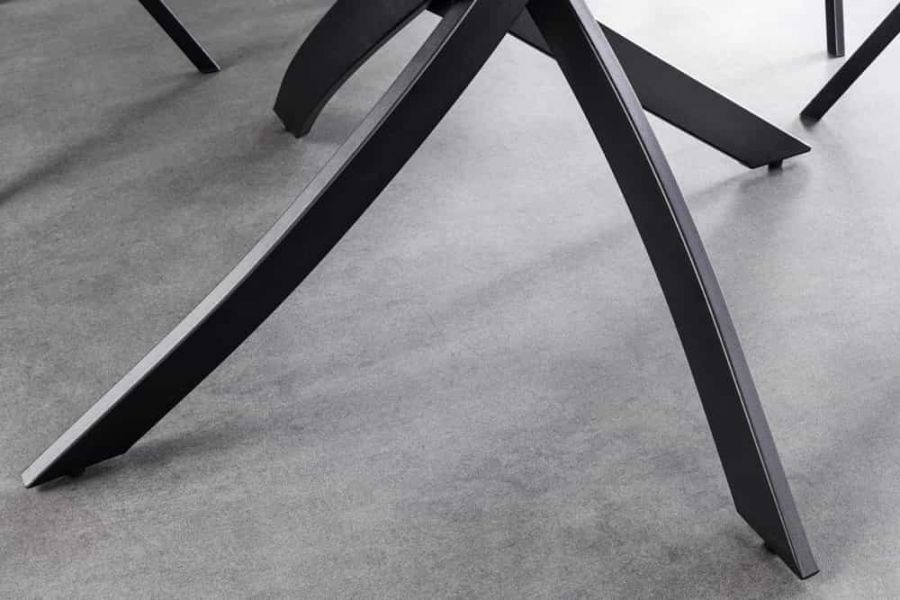 Okrągły stół ceramiczny Alpine 120 cm antracytowy zachwyca połączeniem intensywnej kolorystyki i dynamicznej podstawy. Ceramiczny blat o średnicy 120 cm w głębokim, matowym antracycie nadaje wnętrzu spokojnej elegancji, jednocześnie podkreślając jego nowoczesny wymiar. Rzeźbiarsko uformowana podstawa w czerni, złożona z krzyżujących się elementów, nadaje meblowi lekkości i architektonicznego wyrazu, tworząc spójną i harmonijną formę.