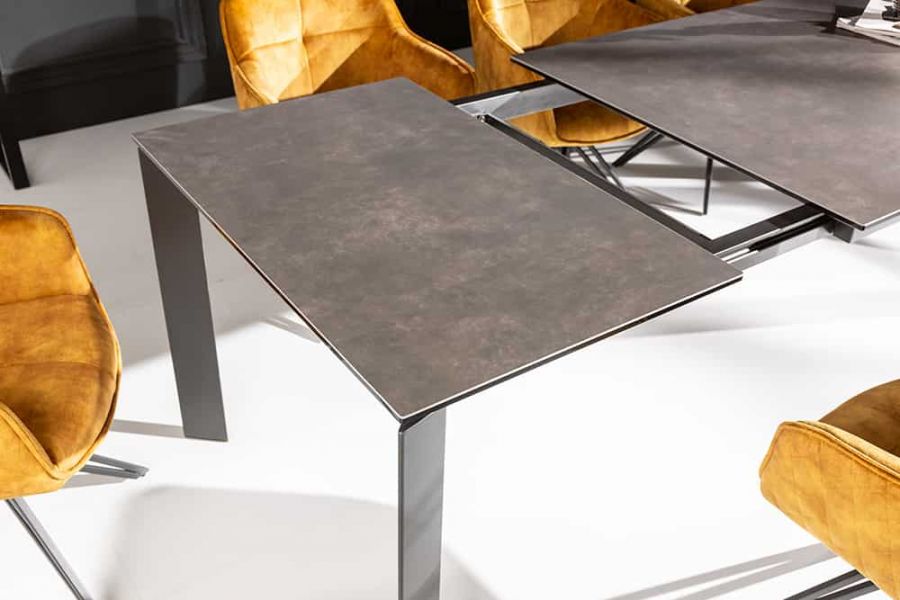 Rozkładany stół ceramiczny X7 180–240 cm antracyt zachwyca minimalistyczną sylwetką i włoskim wyczuciem proporcji. Blat wykonany z ceramiki w szlachetnym odcieniu antracytu tworzy matową, stonowaną powierzchnię, która prezentuje się elegancko zarówno w świetle dziennym, jak i sztucznym. Rozsuwany mechanizm pozwala powiększyć stół z 180 cm do 240 cm, dzięki czemu z łatwością dopasowuje się do liczby gości. Geometryczne nogi w ciemnym kolorze dodają całości stabilności i współczesnego charakteru.