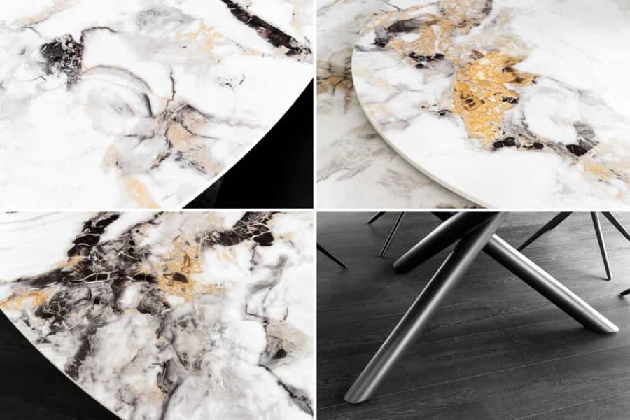 Stół ceramiczny okrągły z obrotowym blatem Spin Aurora Oro 150 cm marmur
