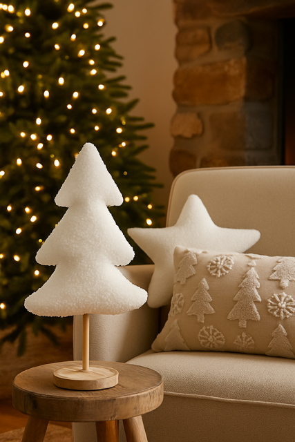 Biała gwiazda z tkaniny boucle dodaje wnętrzu subtelnego charakteru i świetnie komponuje się z zimowymi tekstyliami – pledami, kocami, futrzanymi poduszkami czy naturalnymi ozdobami. Może znaleźć swoje miejsce na sofie, łóżku, w fotelu przy kominku albo w pokoju dziecięcym, gdzie stanie się uroczym świątecznym akcentem. Jej neutralny kolor sprawia, że pięknie współgra zarówno z dekoracjami w stylu klasycznym, jak i tymi bardziej nowoczesnymi.