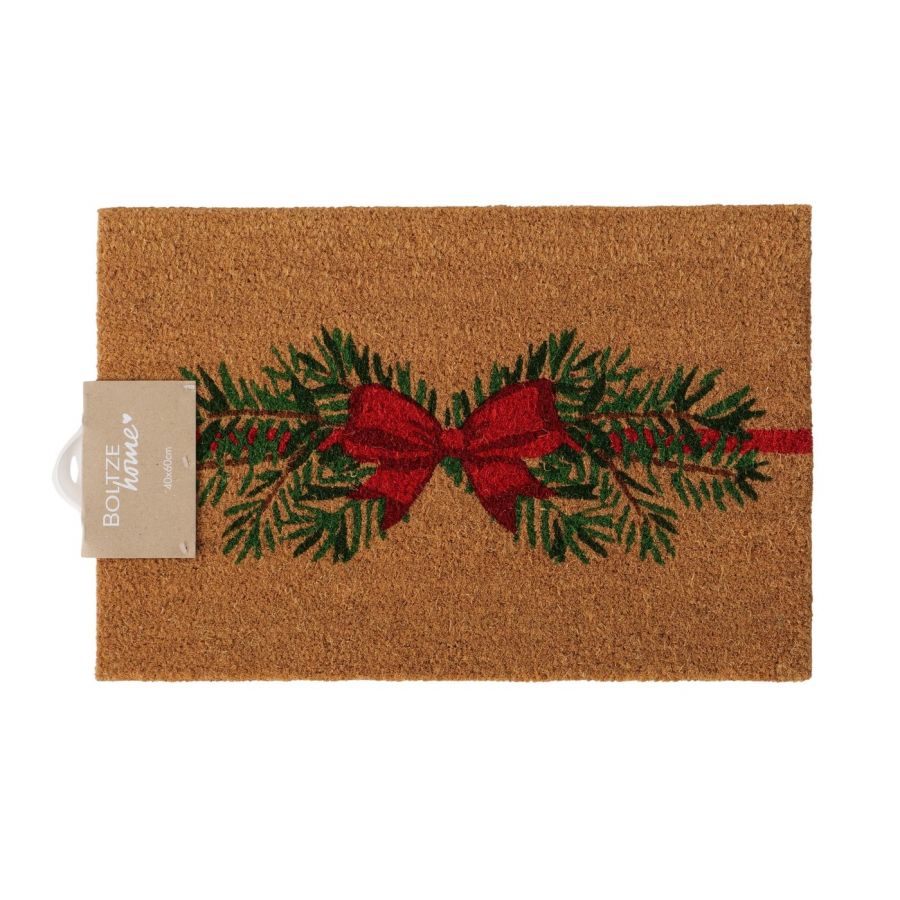 Wycieraczka „Kokarda kokosowa” to idealne rozwiązanie dla przestrzeni, w których liczy się elegancja bez przesytu. Świetnie prezentuje się w przedpokoju, w hallu apartamentu, w nowoczesnym wnętrzu loftowym lub w domu stawiającym na spokojne święta w świetle naturalnych materiałów. To dekoracja, która nie krzyczy „święta!” — sugeruje je z wyrafinowaniem.