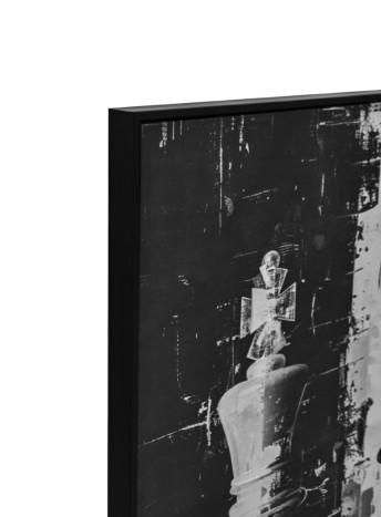 Obraz Chess Szachy 83 × 123 cm to propozycja dla osób, które nie boją się wyrażać swojego charakteru poprzez wnętrza. Monumentalny, mocny w formie i wyjątkowo graficzny – działa jak wizualny manifest. Kontrast czerni i bieli, zestawiony z ekspresyjną, niemal surową fakturą, tworzy kompozycję pełną napięcia i elegancji. To obraz, który nie jest jedynie dekoracją — to statement piece.