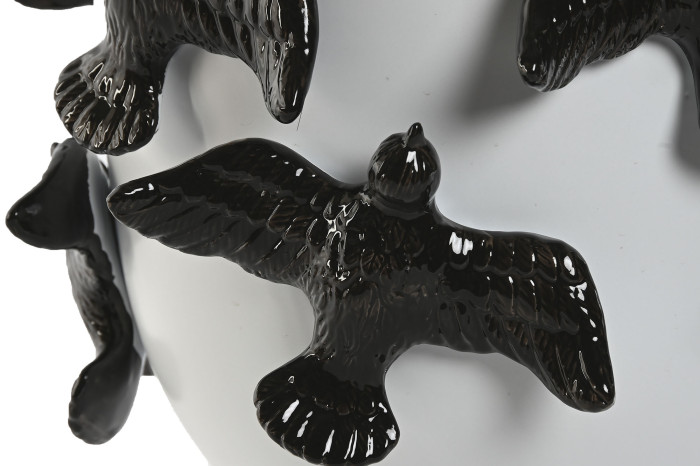 Czerń błyszczących ptaków nadaje całości rytmu i głębi, przełamując minimalistyczny charakter białej ceramiki. Motyw ptaków wprowadza wrażenie ruchu, dzięki czemu wazon Black Birds nie jest statycznym dodatkiem, lecz elementem, który ożywia przestrzeń. To dekoracja, która doskonale odnajduje się w nowoczesnych wnętrzach opartych na kontrastach i świadomie dobranych detalach.