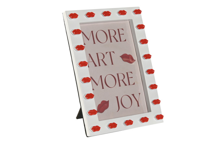 Ramka foto Bocca to dekoracyjny obiekt, który przekształca klasyczną ramkę w element sztuki użytkowej. Biała forma została ozdobiona motywem czerwonych ust, tworząc odważną, pop-artową kompozycję. To przedmiot, który nie pełni wyłącznie funkcji ekspozycyjnej — sam w sobie stanowi mocny akcent aranżacyjny.