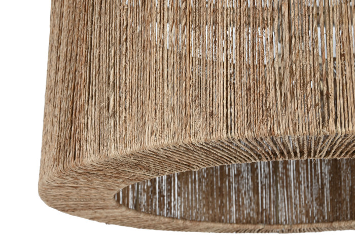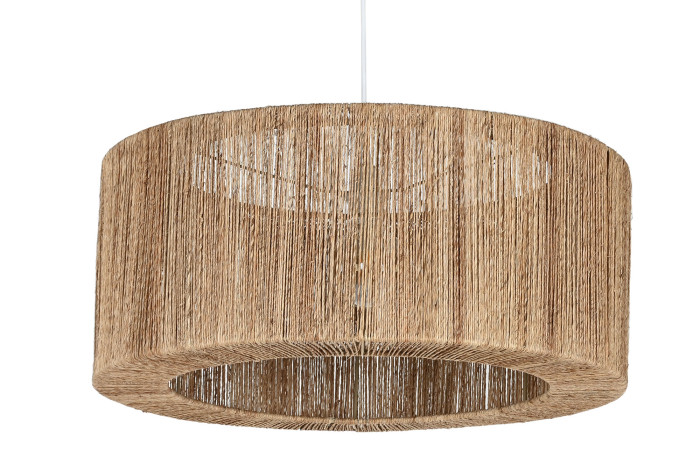 Gęsto ułożone włókna juty filtrują światło w sposób łagodny i naturalny. Dzięki temu we wnętrzu pojawiają się subtelne przejścia tonalne i miękkie cienie, które nadają aranżacji głębi, bez efektu dominacji. Prosta, cylindryczna forma sprawia, że lampa pozostaje elegancka i ponadczasowa.