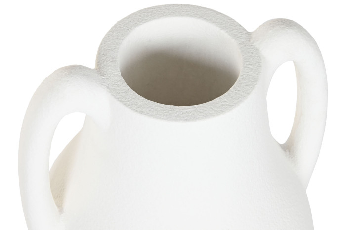 Delikatnie zaokrąglona bryła z subtelnymi uchwytami nawiązuje do klasycznych śródziemnomorskich naczyń, znanych z greckich wysp i południa Europy. Matowa, biała powierzchnia o lekko surowej strukturze pięknie pracuje ze światłem — w ciągu dnia podkreśla architekturę wnętrza, a wieczorem staje się spokojnym, rzeźbiarskim akcentem.