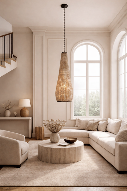 Imponująca wysokość lampy sprawia, że Alaya naturalnie organizuje wnętrze w pionie, nadając mu rytm i elegancję. To propozycja dla osób, które poszukują oświetlenia z wyraźną formą, zdolnego budować atmosferę bez wizualnego ciężaru. Idealna tam, gdzie liczy się balans między naturalnością a dopracowanym detalem.
