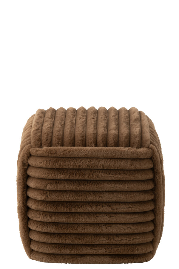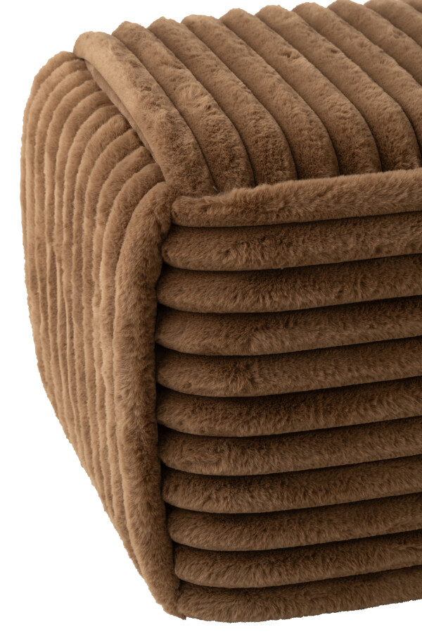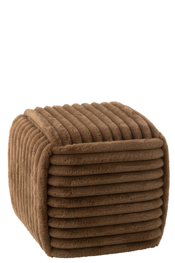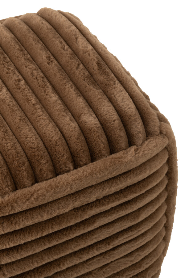 Rytmiczna faktura pufa tworzy spokojny wizualny porządek i wprowadza do wnętrza poczucie komfortu. To ten rodzaj dodatku, który naturalnie odnajduje się przy sofie, w kąciku relaksu czy w sypialni — zawsze tam, gdzie liczy się miękkość i przytulność. Brązowy puf pięknie komponuje się z jasnymi tkaninami, naturalnym drewnem i neutralnymi barwami, dodając im głębi i charakteru.