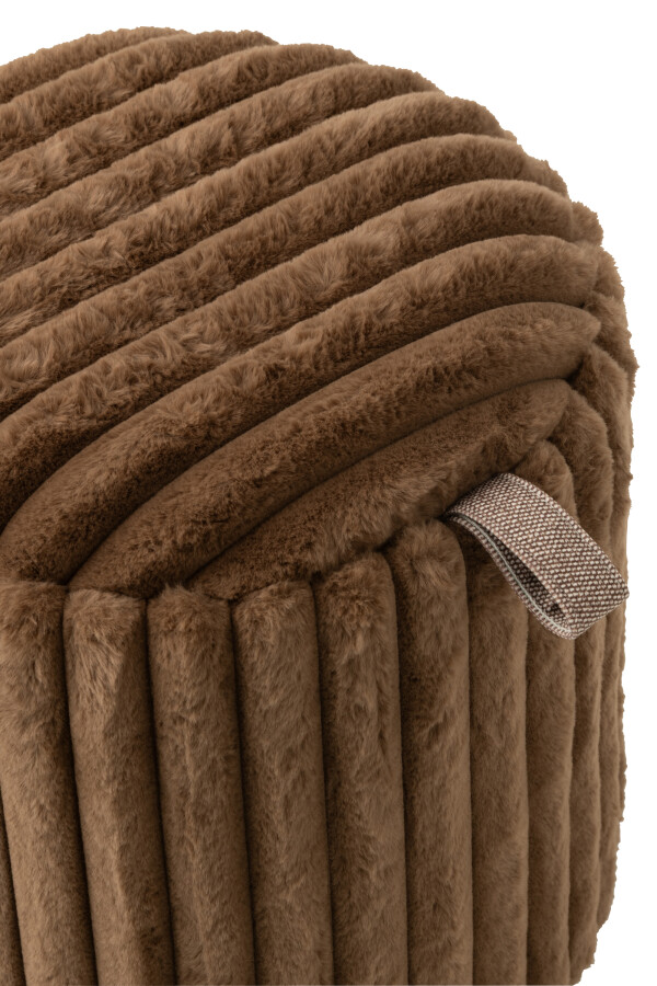Puf Soft Rib brązowy w wersji okrągłej to detal, który natychmiast nadaje wnętrzu głębi i przytulności. Jego miękka, obła forma działa kojąco i wprowadza do przestrzeni poczucie spokoju oraz domowego komfortu. Czekoladowy odcień brązu sprawia, że puf staje się wyrazistym, ale wciąż eleganckim akcentem — idealnym do jasnych, dopracowanych aranżacji.