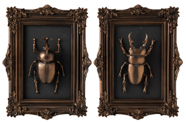 Złote owady w brązowych ramach stanowią dekorację, która wyróżnia się swoją elegancją i dbałością o detale. Ich połączenie z ciemnymi ramami dodaje zestawowi Cabinet of Wonders brązowy wyrafinowanego charakteru, idealnie pasującego do klasycznych oraz nowoczesnych wnętrz. To subtelny, ale wyrazisty akcent, który świetnie komponuje się z różnorodnymi stylami aranżacyjnymi.