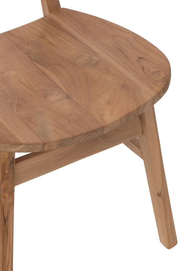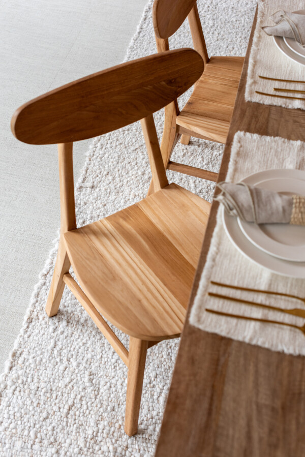 Drewno tekowe, z którego zostało wykonane to krzesło, stanowi idealne tło dla jego prostych, lecz wyważonych linii. Jego naturalne usłojenie i ciepła barwa nadają meblowi wyjątkowego charakteru, który w połączeniu z minimalizmem tworzy elegancką, ale zarazem subtelną całość. Krzesło Wabi Sabi przyciąga wzrok swoją autentycznością, będąc doskonałym przykładem elegancji w prostocie.