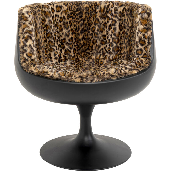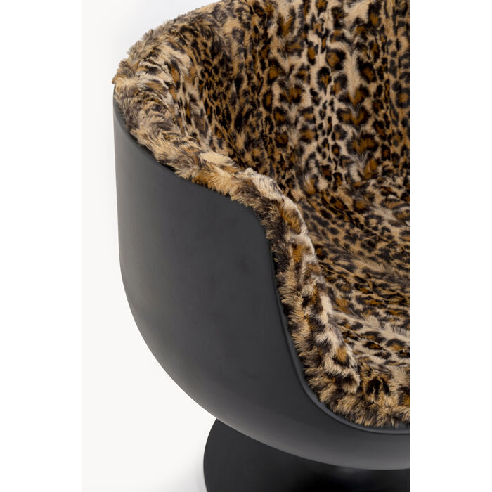 Fotel Club Leopard to hołd dla klasycznego wzornictwa lat 60., z nutą współczesnej elegancji. Jego zaokrąglona forma i charakterystyczny, obrotowy mechanizm dodają mu nowoczesnego charakteru, który doskonale komponuje się z trendami współczesnego designu. Połączenie czarnego akcentu z odważnym wzorem leoparda zapewnia efektowny kontrast, który sprawdzi się w różnorodnych aranżacjach – od nowoczesnych apartamentów po eklektyczne przestrzenie.