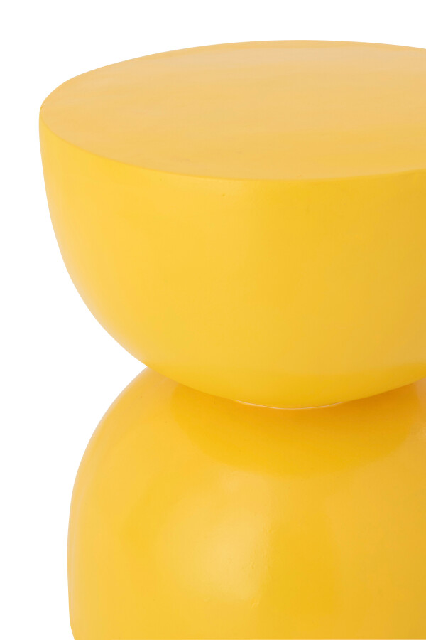 Żółty odcień nadaje stolikowi świeżości i optymizmu, jednocześnie podkreślając jego rzeźbiarski charakter. Gładka powierzchnia subtelnie odbija światło, sprawiając, że mebel zmienia swój wyraz w zależności od otoczenia i pory dnia, zawsze pozostając wyrazistym, ale eleganckim akcentem.