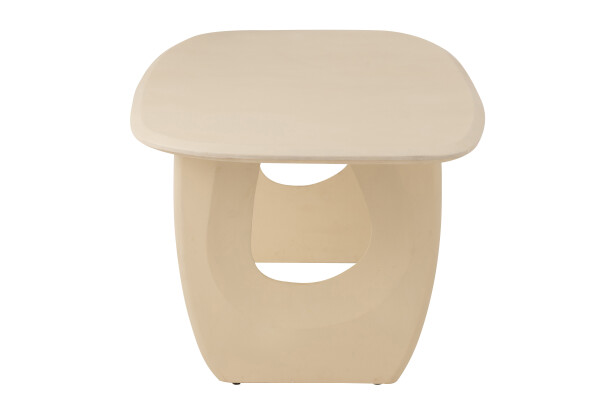 Blat o łagodnych liniach przypomina wygładzone przez czas kamienne powierzchnie, a rzeźbiarskie nogi z charakterystycznym wycięciem nadają całości lekkości mimo wyrazistej skali. To design, który czerpie z natury i architektury — prosty, ale pełen niuansów widocznych przy każdym spojrzeniu.