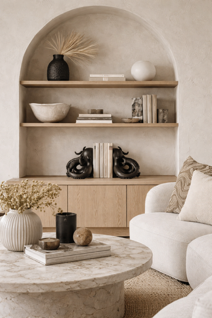 – Na konsolach, komodach i otwartych regałach – jako obiekt, który sam w sobie buduje kompozycję