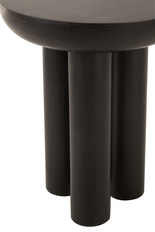 Ten stolik nie próbuje być tłem. Jest formą, która od razu ustawia rytm wnętrza. Okrągły blat wsparty na trzech masywnych cylindrach tworzy kompozycję, która bardziej przypomina obiekt galerii designu niż klasyczny stolik kawowy. Valencia w czerni zmienia zwykły salon w przestrzeń o wyraźnym, designerskim charakterze.