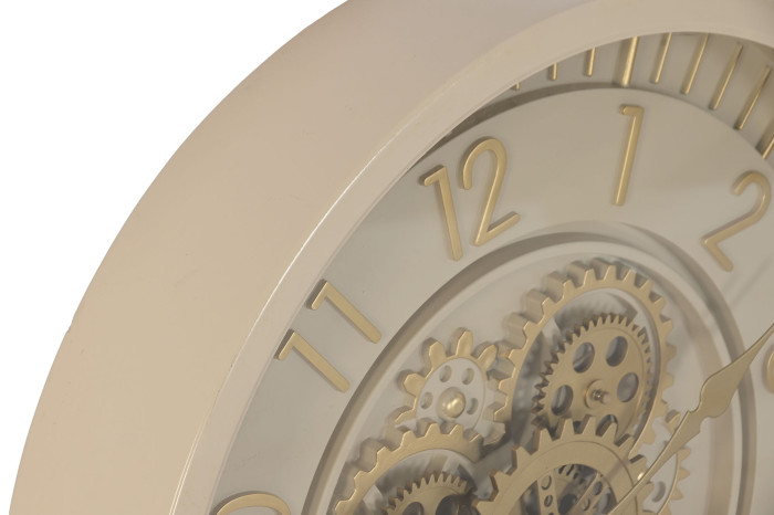 Stolik Timekeeper to połączenie funkcjonalności i designu, które zaskakuje nie tylko kształtem, ale także swoją unikalną konstrukcją. Wbudowany zegar, z widocznymi mechanicznymi trybami, to prawdziwe dzieło sztuki, które ożywia przestrzeń. Z delikatnym, kremowym wykończeniem i złotymi detalami, stolik wpisuje się w eleganckie, nowoczesne aranżacje, łącząc elegancję z odrobiną industrialnego charakteru. Jego złote elementy oraz wyrafinowana konstrukcja sprawiają, że staje się centralnym punktem każdej przestrzeni, idealnym do salonu, biura czy przestronnej jadalni.