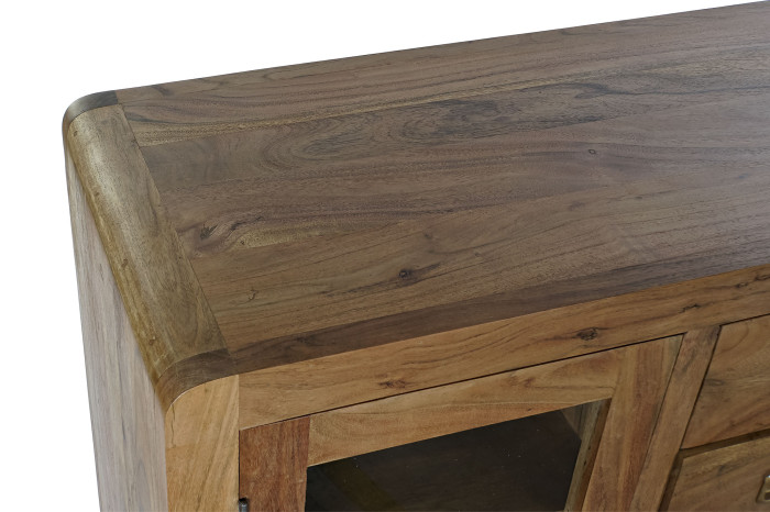 Komoda Eden to połączenie funkcjonalności z elegancją, z każdym elementem zaprojektowanym tak, by wprowadzić do wnętrza spokojną równowagę. Prosta forma, zaokrąglone rogi i delikatne, złocone uchwyty z mosiądzu tworzą elegancki, ale nieskrępowany design, który będzie towarzyszyć Ci przez lata. Drewno akacji, które subtelnie przełamuje chłód nowoczesnych wnętrz, wydobywa ich naturalny charakter, nadając im wyważoną, niemal intymną atmosferę.