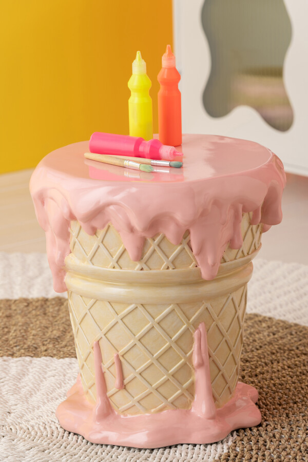 Stolik kawowy Ice Cream pink to designerski obiekt inspirowany estetyką pop-artu i formą topniejących lodów. Wyraźna, rzeźbiarska bryła przyciąga uwagę już na pierwszy rzut oka, balansując pomiędzy humorem a świadomym projektem. To stolik, który funkcjonuje nie tylko jako mebel, ale jako art object definiujący charakter wnętrza.