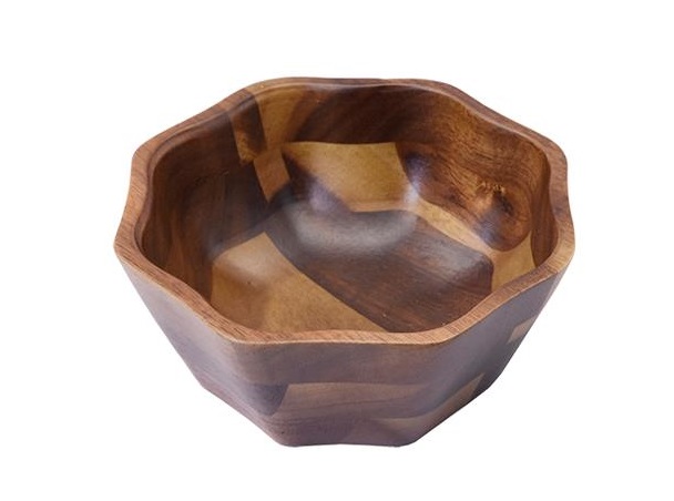 Wykonana z drewna akacjowego, zachwyca bogatą strukturą słojów i subtelną grą odcieni – od miodowych tonów po głębsze brązy. Każdy egzemplarz jest niepowtarzalny, dzięki czemu misa staje się indywidualnym elementem aranżacji stołu.