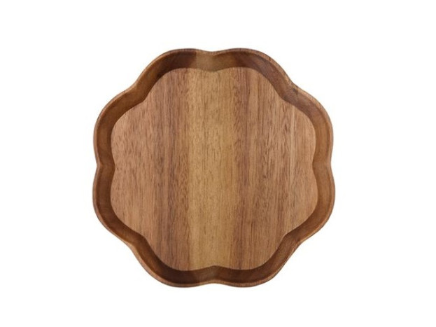 Wykonany z drewna akacjowego, zachwyca wyrazistym usłojeniem i subtelnymi przejściami tonalnymi. Każdy egzemplarz posiada indywidualny układ słojów, dzięki czemu talerz zyskuje unikalny charakter i naturalną głębię.