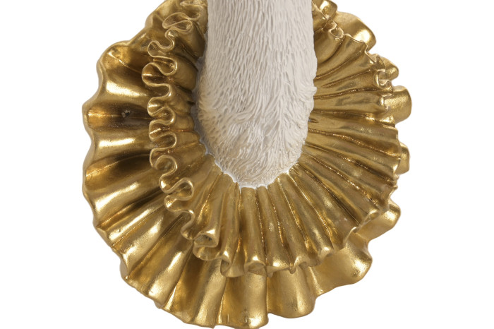 Model dostępny jest do wyboru w 1 z 2 kolorów. Wersja w ciepłym, naturalnym odcieniu z jasną kryzą wnosi miękkość i artystyczną lekkość. Biała odsłona ze złotą kryzą podkreśla elegancki, bardziej wyrafinowany charakter przestrzeni. Każdy wariant pozwala zbudować inny klimat – od modern eclectic po luksusowe wnętrza glamour i art déco.