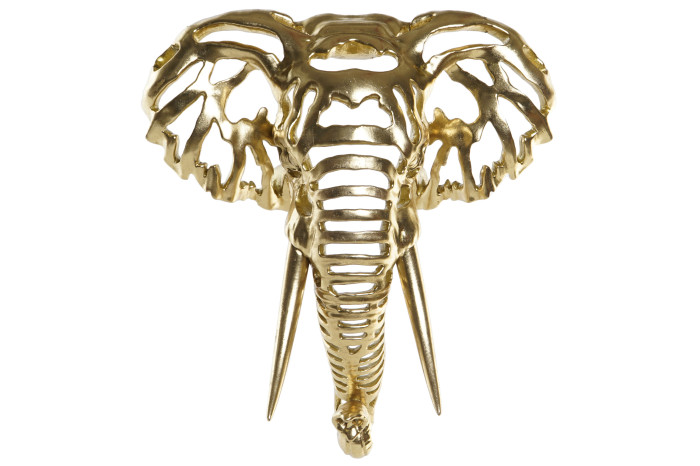 Charakterystyczne uszy i wydłużona linia trąby zostały ujęte w geometrycznej, niemal abstrakcyjnej stylistyce. Dzięki temu dekoracja balansuje między naturą a sztuką współczesną. Może funkcjonować jako centralny punkt aranżacji lub jako część większej kompozycji ściennej w estetyce modern, glam czy contemporary.