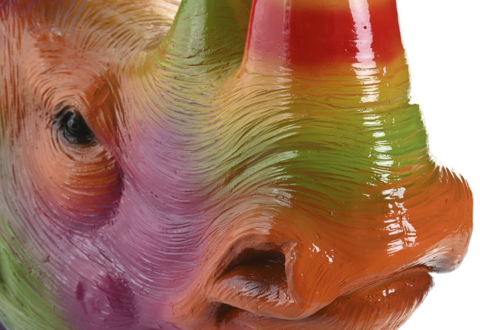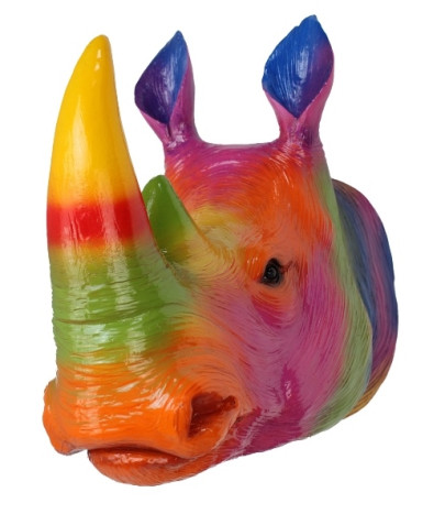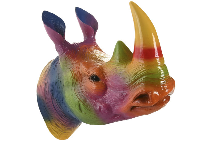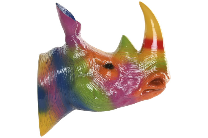 Monumentalny róg i wyrazista sylwetka zostały zestawione z energetyczną paletą barw, tworząc efekt na pograniczu galerii sztuki i designu kolekcjonerskiego. Rino Pop Art doskonale odnajduje się na jednolitej, głębokiej ścianie — w salonie, gabinecie, strefie lounge czy nowoczesnym biurze. To punkt centralny aranżacji, który nadaje wnętrzu charakter galerii prywatnej.