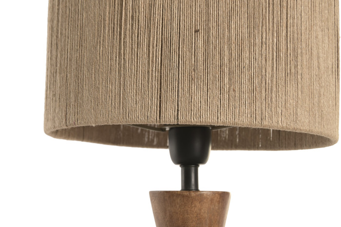 Tkaninowy abażur o naturalnej strukturze delikatnie filtruje światło, nadając mu ciepły, przyjemny charakter. Lampa doskonale odnajduje się na konsoli, komodzie, stoliku nocnym lub w strefie lounge. Tworzy kameralny klimat, sprzyjający relaksowi i wyciszeniu.