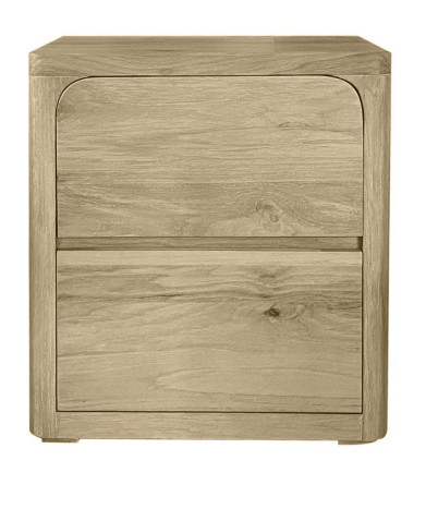 W mniejszym formacie drewno wybrzmiewa jeszcze wyraźniej. Naturalne usłojenie tworzy delikatny rysunek na frontach, podkreślając autentyczność materiału. To szafka nocna z litego drewna, która nie imituje — ona jest prawdziwa. Każdy egzemplarz posiada indywidualny charakter, co czyni ją subtelnym, lecz wyrafinowanym akcentem wnętrza.