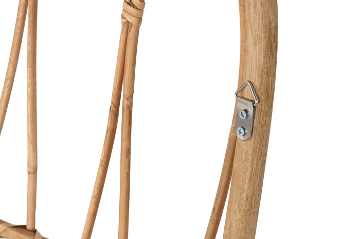 Smukłe elementy bambusowej konstrukcji tworzą powtarzalny rytm łuków, który nadaje całej kompozycji subtelną architektoniczną harmonię. Naturalny odcień bambusa podkreśla organiczny charakter projektu, a ręczne łączenia materiału dodają mu autentyczności i rzemieślniczego uroku.