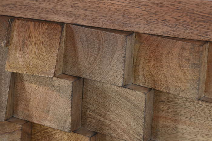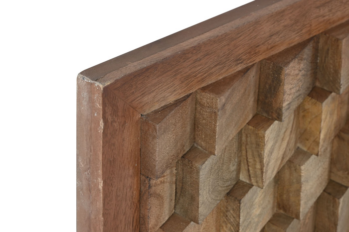 Wezgłowie Modern 3D z drewna mango 160 cm wygląda jak współczesna rzeźba ścienna. Setki niewielkich drewnianych elementów tworzą trójwymiarową mozaikę, która przyciąga wzrok już od pierwszej chwili. Każdy fragment ma własną fakturę, odcień i rysunek słojów, dzięki czemu powierzchnia żyje światłem i naturalnym rytmem drewna. To nie jest zwykły zagłówek – to dekoracyjny panel, który zamienia łóżko w centralny punkt sypialni.