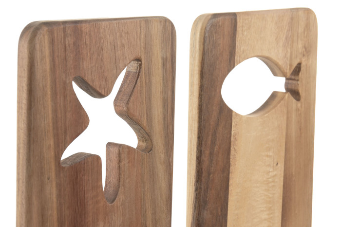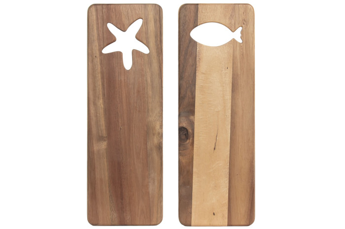 Każda z desek zachwyca prostotą i harmonią naturalnych materiałów. Wyrazista struktura drewna podkreśla autentyczny charakter produktu, a wycięte motywy morskie nadają mu unikalny styl. To połączenie funkcjonalności i estetyki sprawia, że zestaw doskonale prezentuje się zarówno podczas przygotowywania posiłków, jak i podczas serwowania przekąsek czy świeżego pieczywa.