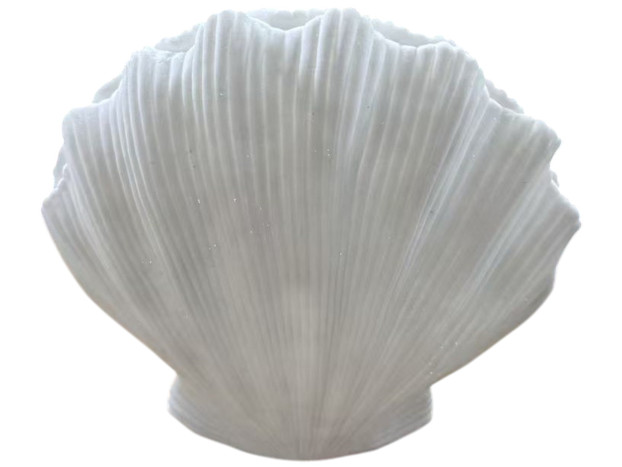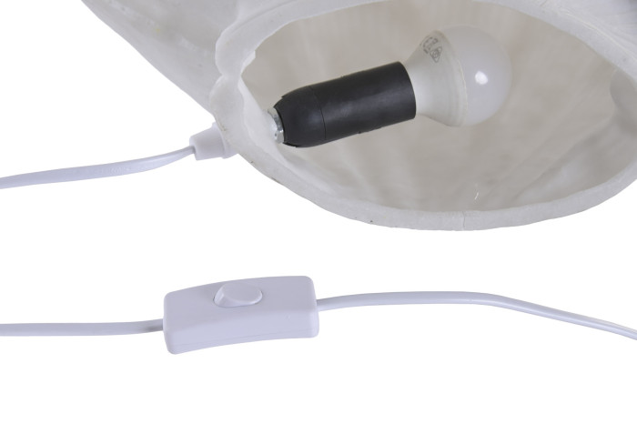 Forma lampy przypomina dużą muszlę otwierającą się niczym naturalna rzeźba. Delikatne linie promieniście rozchodzą się po jej powierzchni, tworząc efekt światła i cienia, który zmienia się wraz z oświetleniem wnętrza. Po zapaleniu lampy miękkie światło subtelnie przenika przez jej strukturę, podkreślając organiczny charakter formy i nadając jej niemal artystyczny wymiar.