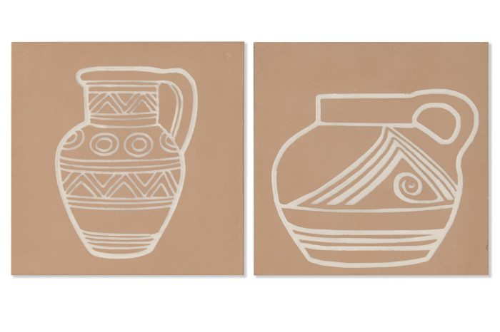 Obrazy, o wymiarach 60 x 60 cm, wyróżniają się detalami reliefu, który nadaje im trójwymiarowy charakter. Zarys naczyń wykonany w technice reliefu przywodzi na myśl rzemieślniczą precyzję i staranność, dzięki czemu każdy z obrazów staje się małym dziełem sztuki. Tego typu dekoracje są idealne do wnętrz inspirowanych stylem boho, coastal, czy w nowoczesnym wydaniu z naturalnymi akcentami.