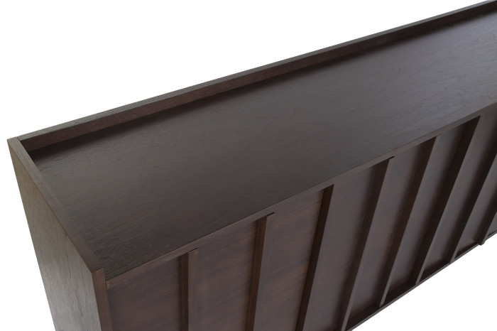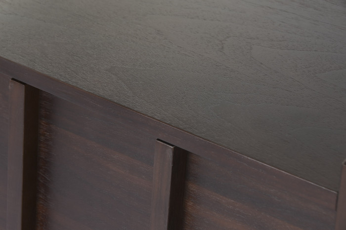 Faktura o ciemnym odcieniu nadaje komodzie Misterium Art wyjątkowej elegancji. Jego intensywna barwa podkreśla subtelną głębię konstrukcji, a matowe wykończenie sprawia, że komoda wpisuje się w elegancki, a jednocześnie stonowany klimat nowoczesnych przestrzeni. Doskonale komponuje się z przestrzeniami, które cenią harmonię, spokój i prostotę, tworząc z nimi idealną syntezę.