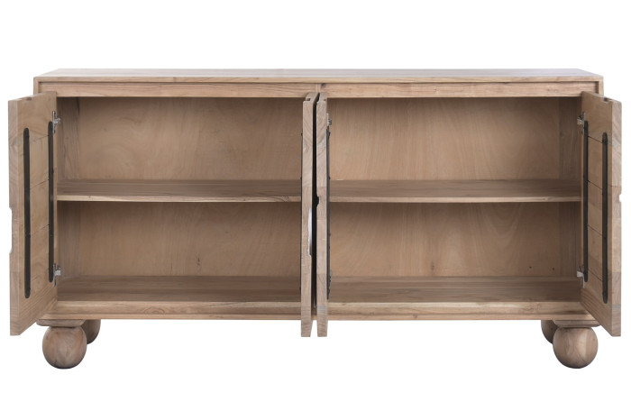 W sercu komody drewnianej Japandi Modern pulsuje sztuka współczesna, której surowa, naturalna materia spotyka się z eleganckim minimalizmem. To mebel, który wykracza poza standardy, oferując przestrzeni nie tylko funkcjonalność, ale również estetyczne doznania. Każdy element, od lekkich zaokrąglonych nóg po graficzne wzory na drzwiach, tworzy harmoniczną całość, która w subtelny sposób nawiązuje do japońskiej filozofii designu — prostoty, harmonii i naturalnych form.