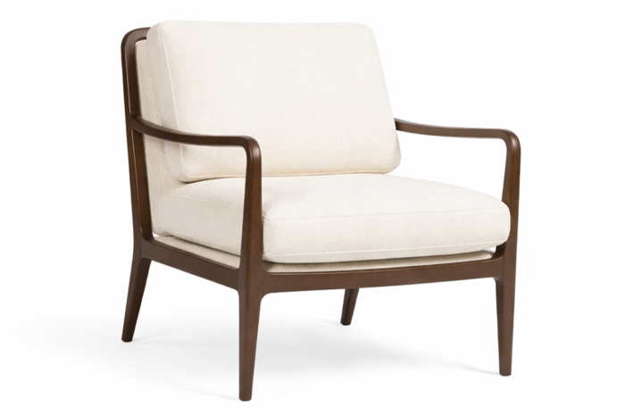 Gięta, płynna forma drewnianej ramy układa się w miękką, harmonijną linię, przypominając szkic wykonany jednym, pewnym ruchem ręki. To właśnie detal konstrukcji staje się tu głównym bohaterem — subtelny, ale wyrazisty. Jasna tapicerka wprowadza spokój i równowagę, pozwalając formie oddychać i wybrzmieć.