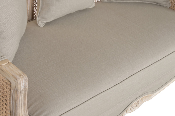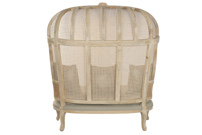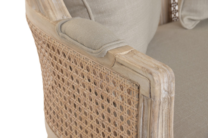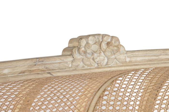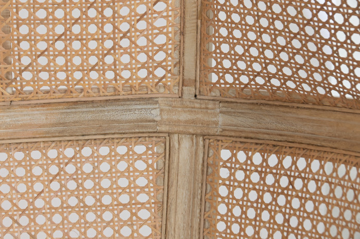 Ażurowa struktura powstała z naturalnego cane, czyli zewnętrznej warstwy rattanu, który od wieków wykorzystywany jest w meblarstwie do tworzenia lekkich, a jednocześnie trwałych form . Dzięki temu fotel zachowuje wizualną lekkość, przepuszcza światło i wprowadza do wnętrza naturalny rytm. To detal, który nie tylko zdobi, ale świadczy o kunszcie wykonania.