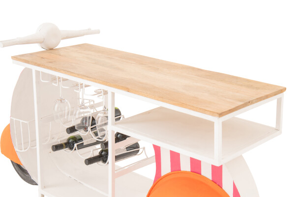 Są przedmioty, które nie potrzebują słów, by opowiedzieć historię. Ten barek przywołuje klimat ciepłych wieczorów, koloru zachodzącego słońca i swobodnego stylu życia, w którym wszystko dzieje się trochę wolniej, trochę piękniej. Inspiracja klasycznym skuterem nadaje mu lekkości i charakteru, który natychmiast zmienia energię całego wnętrza.