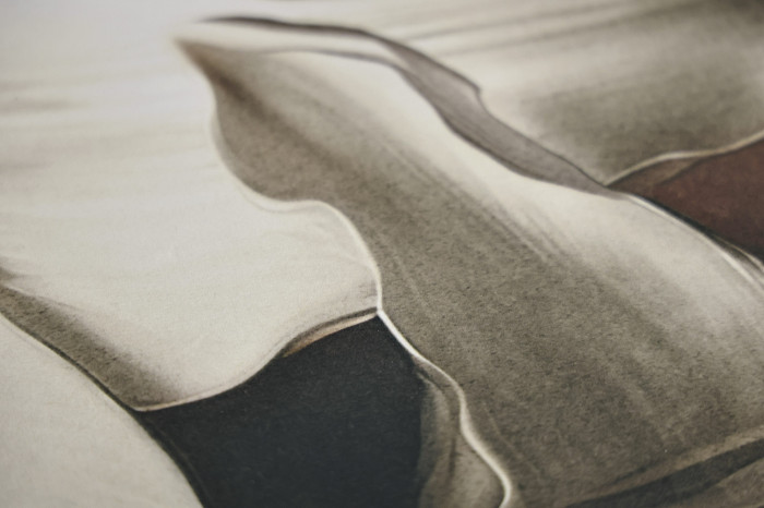Format 80 x 120 cm nadaje im obecność, której nie da się pominąć. Zawieszone obok siebie tworzą spokojną, ale wyraźną kompozycję – jak dialog dwóch obrazów. To idealne miejsce dla nich: nad konsolą, przy stole, w sypialni, gdzie światło mięknie, a wnętrze staje się bardziej intymne.