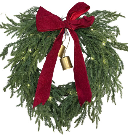 Wianek świąteczny LED z kokardą i dzwonkami
