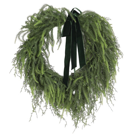 Dzięki swojej okazałej średnicy ok. 65 cm wianek staje się wyraźnym, reprezentacyjnym elementem aranżacji. Idealnie sprawdzi się na drzwiach wejściowych, nad kominkiem lub jako centralna dekoracja ściany. Jego lekko opadająca forma nadaje mu swobodnego, naturalnego charakteru, który wyróżnia go na tle klasycznych, bardziej zbitych wieńców.